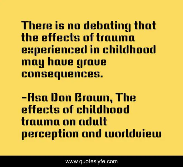 "Asa Don Brown, The effects of childhood trauma on adult perception and worldview Quotes." Quoteslyfe.com, 2025. Sat. 06 Dec. 2025. <https://www.quoteslyfe.com/quote/There-is-no-debating-that-the-effects-99681>.