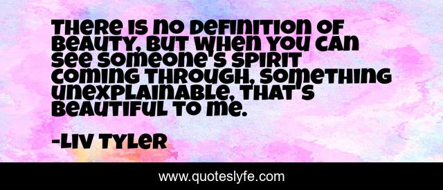 This page presents the quote "There is no definition of beauty, but when you can see someone's spirit coming through, something unexplainable, that's beautiful to me.". Author of this quote is Liv Tyler. This quote is about beautiful, me,.