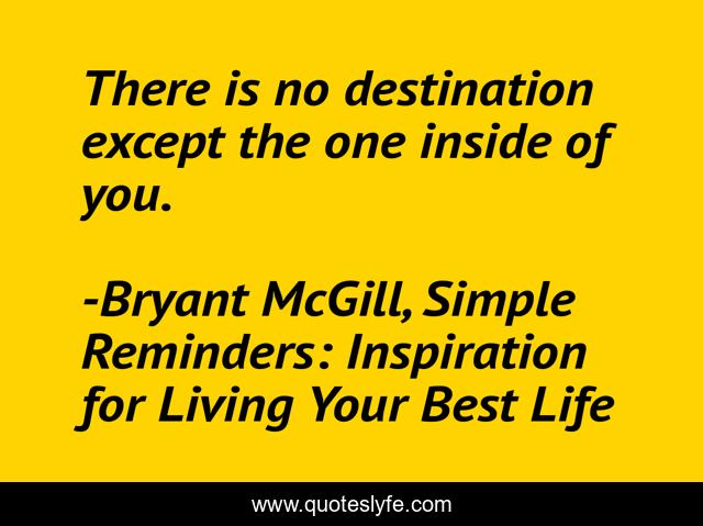 "Bryant McGill, Simple Reminders: Inspiration for Living Your Best Life Quotes." Quoteslyfe.com, 2025. Sat. 06 Dec. 2025. <https://www.quoteslyfe.com/quote/There-is-no-destination-except-the-one-107467>.