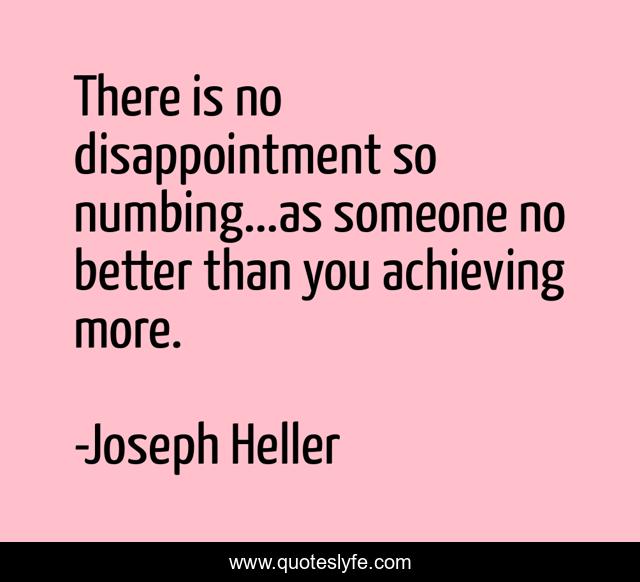 This page presents the quote "There is no disappointment so numbing...as someone no better than you achieving more.". Author of this quote is Joseph Heller. This quote is about envy, bitterness,.