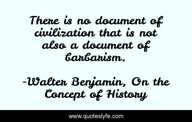 "Walter Benjamin, On the Concept of History Quotes." Quoteslyfe.com, 2025. Fri. 05 Dec. 2025. <https://www.quoteslyfe.com/quote/There-is-no-document-of-civilization-that-70163>.