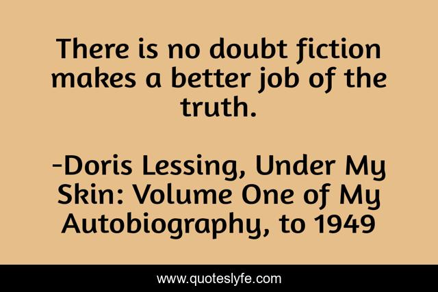 "Doris Lessing, Under My Skin: Volume One of My Autobiography, to 1949 Quotes." Quoteslyfe.com, 2025. Sun. 07 Dec. 2025. <https://www.quoteslyfe.com/quote/There-is-no-doubt-fiction-makes-a-8986>.
