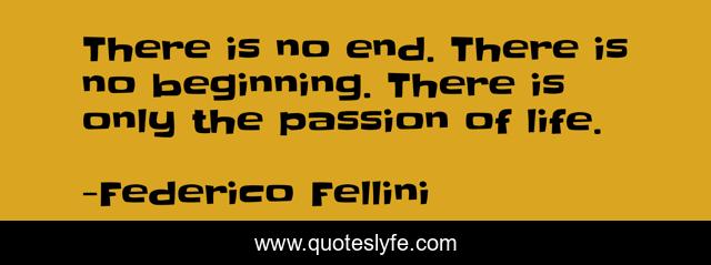 This page presents the quote "There is no end. There is no beginning. There is only the passion of life.". Author of this quote is Federico Fellini. This quote is about life, passion, adventure,.