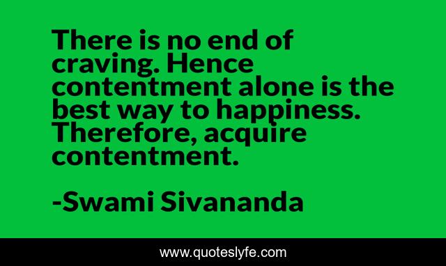 This page presents the quote "There is no end of craving. Hence contentment alone is the best way to happiness. Therefore, acquire contentment.". Author of this quote is Swami Sivananda. This quote is about alone, end, best,.