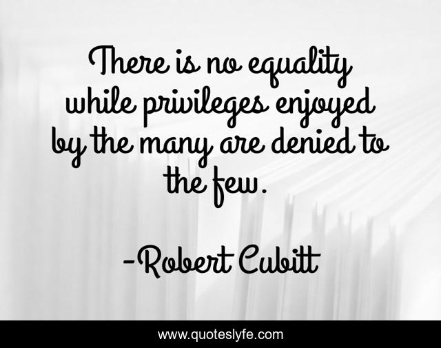 This page presents the quote "There is no equality while privileges enjoyed by the many are denied to the few.". Author of this quote is Robert Cubitt. This quote is about equality-and-attitude, equality,.