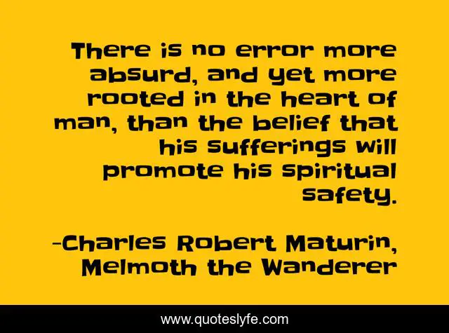This page presents the quote "There is no error more absurd, and yet more rooted in the heart of man, than the belief that his sufferings will promote his spiritual safety.". Author of this quote is Charles Robert Maturin, Melmoth the Wanderer. This quote is about spirituality, suffering,.