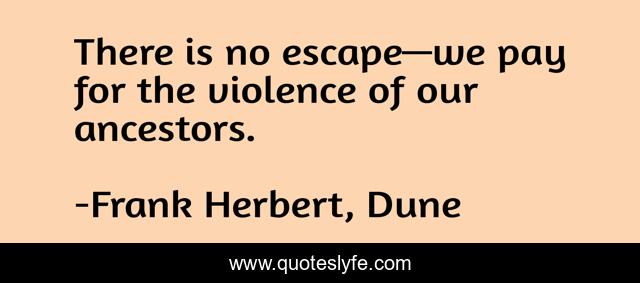 This page presents the quote "There is no escape—we pay for the violence of our ancestors.". Author of this quote is Frank Herbert, Dune. This quote is about life, death, philosophy, wisdom, legacy, truth, muad-dib,.
