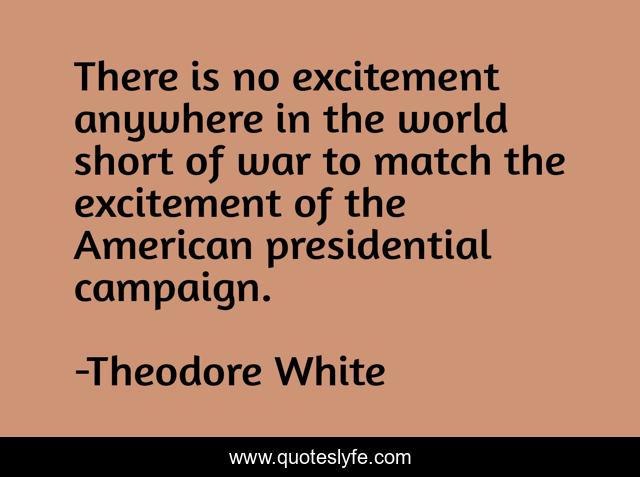 This page presents the quote "There is no excitement anywhere in the world short of war to match the excitement of the American presidential campaign.". Author of this quote is Theodore White. .