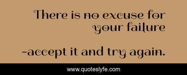 This page presents the quote "There is no excuse for your failure". Author of this quote is accept it and try again.. .
