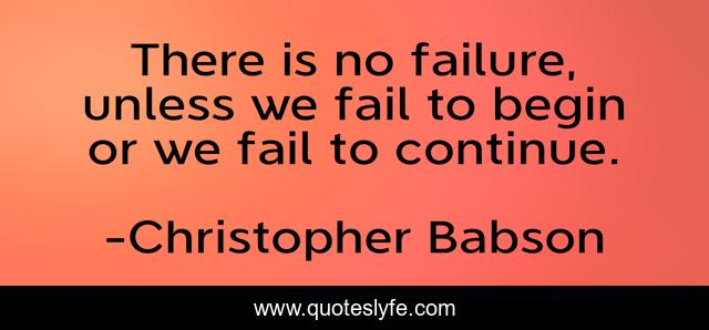 This page presents the quote "There is no failure, unless we fail to begin or we fail to continue.". Author of this quote is Christopher Babson. This quote is about life-coaching, motivation, success, business, positive, motivational, confidence, self-development, entrepreneur,.