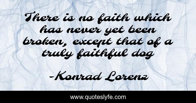 This page presents the quote "There is no faith which has never yet been broken, except that of a truly faithful dog". Author of this quote is Konrad Lorenz. .