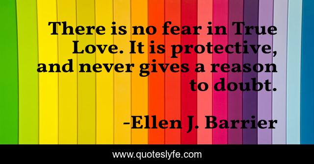 This page presents the quote "There is no fear in True Love. It is protective, and never gives a reason to doubt.". Author of this quote is Ellen J. Barrier. This quote is about true-love, protective,.
