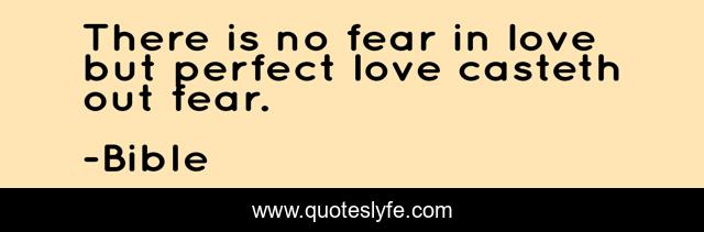 This page presents the quote "There is no fear in love but perfect love casteth out fear.". Author of this quote is Bible. This quote is about love, affection,.