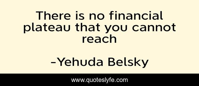 This page presents the quote "There is no financial plateau that you cannot reach". Author of this quote is Yehuda Belsky. This quote is about money, influence, inspiration,.