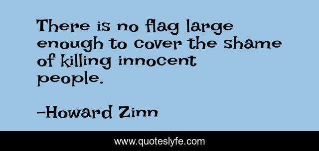 This page presents the quote "There is no flag large enough to cover the shame of killing innocent people.". Author of this quote is Howard Zinn. This quote is about nationalism, patriotism, war,.