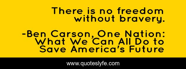 This page presents the quote "There is no freedom without bravery.". Author of this quote is Ben Carson, One Nation: What We Can All Do to Save America's Future. This quote is about freedom, courage, bravery,.