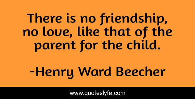 This page presents the quote "There is no friendship, no love, like that of the parent for the child.". Author of this quote is Henry Ward Beecher. This quote is about friendship, parent, child,.