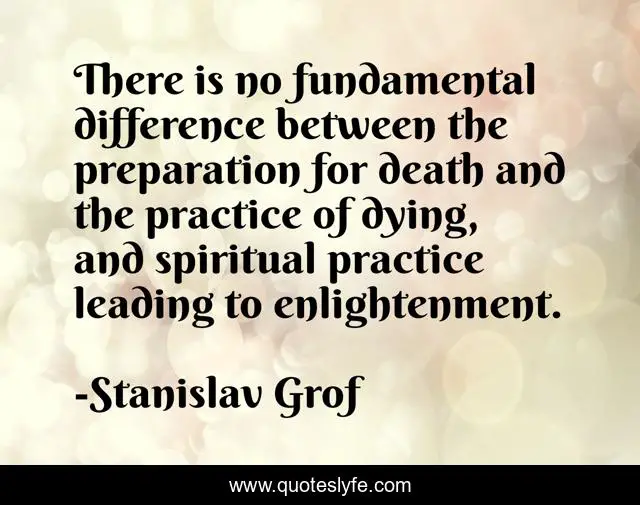 This page presents the quote "There is no fundamental difference between the preparation for death and the practice of dying, and spiritual practice leading to enlightenment.". Author of this quote is Stanislav Grof. This quote is about preparation, spiritual,.
