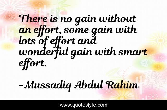 This page presents the quote "There is no gain without an effort, some gain with lots of effort and wonderful gain with smart effort.". Author of this quote is Mussadiq Abdul Rahim. This quote is about smartness, effort, hard-work,.
