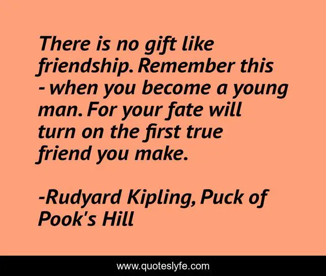 "Rudyard Kipling, Puck of Pook's Hill Quotes." Quoteslyfe.com, 2025. Tue. 09 Dec. 2025. <https://www.quoteslyfe.com/quote/There-is-no-gift-like-friendship-Remember-50601>.