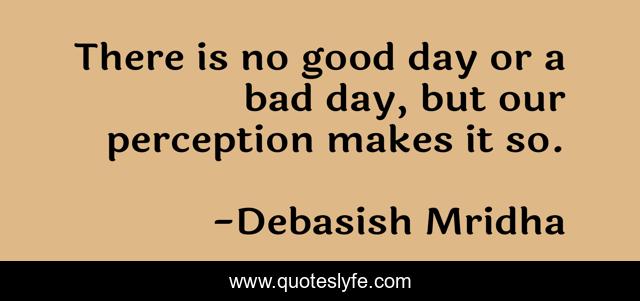 This page presents the quote "There is no good day or a bad day, but our perception makes it so.". Author of this quote is Debasish Mridha. This quote is about life, love, knowledge, inspirational, intelligence, philosophy, wisdom, quotes, affection,.