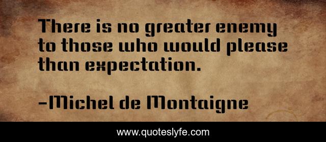 This page presents the quote "There is no greater enemy to those who would please than expectation.". Author of this quote is Michel de Montaigne. This quote is about realistic, expectations,.