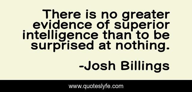 This page presents the quote "There is no greater evidence of superior intelligence than to be surprised at nothing.". Author of this quote is Josh Billings. This quote is about nothing, evidence,.