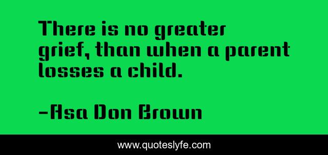 This page presents the quote "There is no greater grief, than when a parent losses a child.". Author of this quote is Asa Don Brown. This quote is about loss, life, psychology, ccpa, counseling, psychotherapy, children,.