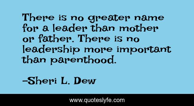 This page presents the quote "There is no greater name for a leader than mother or father. There is no leadership more important than parenthood.". Author of this quote is Sheri L. Dew. This quote is about father, leader, mother,.