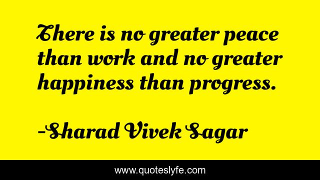 This page presents the quote "There is no greater peace than work and no greater happiness than progress.". Author of this quote is Sharad Vivek Sagar. This quote is about peace, work, hardwork, progress, social-entrepreneurship, happiness,.