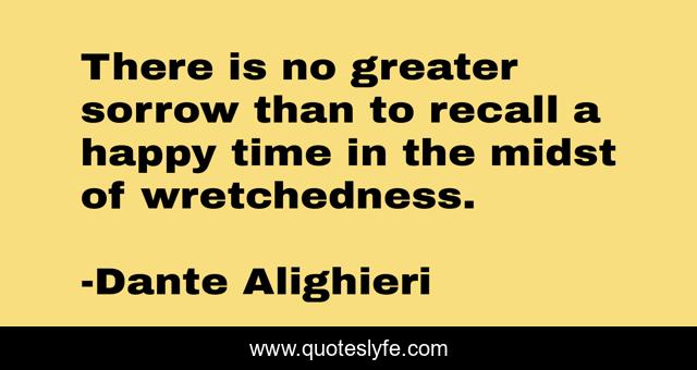 This page presents the quote "There is no greater sorrow than to recall a happy time in the midst of wretchedness.". Author of this quote is Dante Alighieri. .