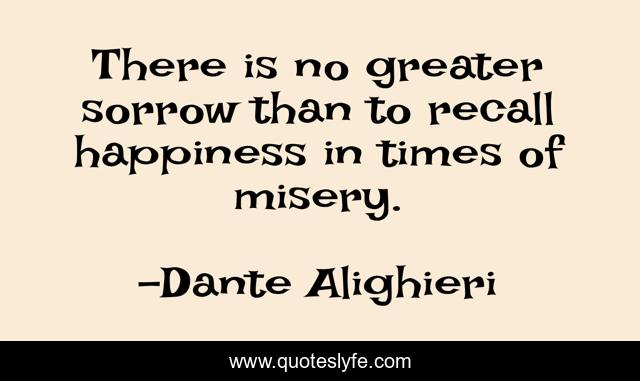 This page presents the quote "There is no greater sorrow than to recall happiness in times of misery.". Author of this quote is Dante Alighieri. This quote is about sympathy, sorrow, misery,.