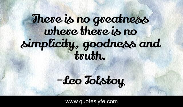 This page presents the quote "There is no greatness where there is no simplicity, goodness and truth.". Author of this quote is Leo Tolstoy. This quote is about simplicity, great, greatness,.