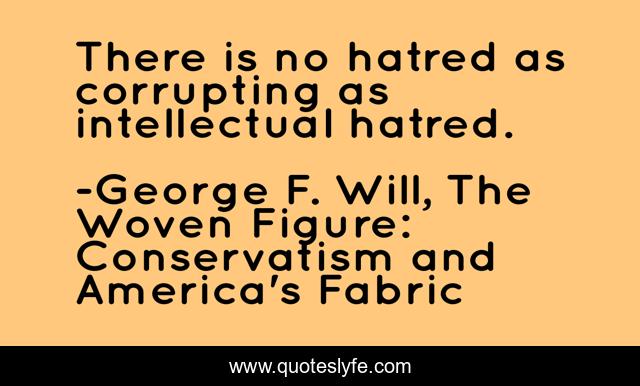 This page presents the quote "There is no hatred as corrupting as intellectual hatred.". Author of this quote is George F. Will, The Woven Figure: Conservatism and America's Fabric. This quote is about assumptions, bias, perspective,.
