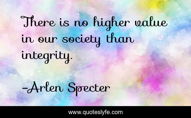 This page presents the quote "There is no higher value in our society than integrity.". Author of this quote is Arlen Specter. This quote is about integrity, value, higher,.