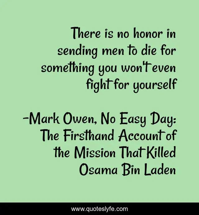 "Mark Owen, No Easy Day: The Firsthand Account of the Mission That Killed Osama Bin Laden Quotes." Quoteslyfe.com, 2025. Sun. 07 Dec. 2025. <https://www.quoteslyfe.com/quote/There-is-no-honor-in-sending-men-220464>.