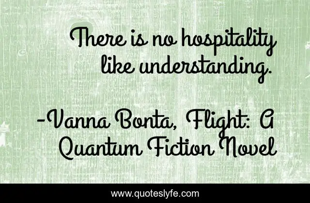 "Vanna Bonta, Flight: A Quantum Fiction Novel Quotes." Quoteslyfe.com, 2025. Mon. 08 Dec. 2025. <https://www.quoteslyfe.com/quote/There-is-no-hospitality-like-understanding-50292>.