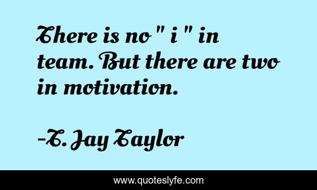 This page presents the quote "There is no " i " in team. But there are two in motivation.". Author of this quote is T. Jay Taylor. This quote is about motivation, will-power, sports, getting-things-done, initiative, self-improvement, progress, self-motivation, teamwork,.