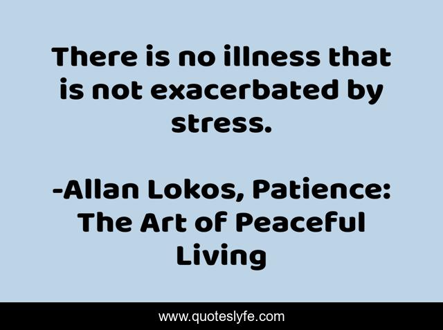 This page presents the quote "There is no illness that is not exacerbated by stress.". Author of this quote is Allan Lokos, Patience: The Art of Peaceful Living. This quote is about buddhism, health-care, health, healing, psychology,.