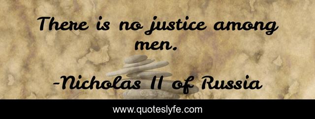 This page presents the quote "There is no justice among men.". Author of this quote is Nicholas II of Russia. This quote is about justice, among,.