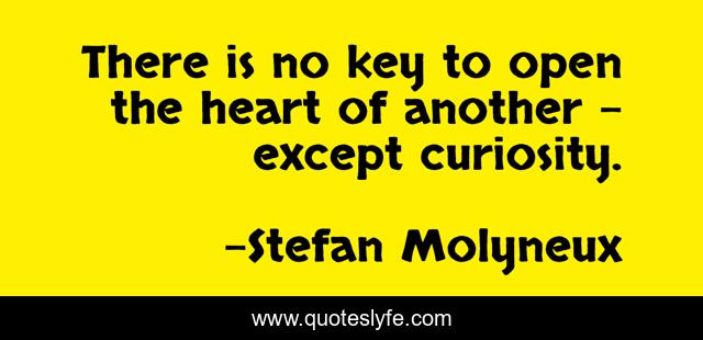This page presents the quote "There is no key to open the heart of another - except curiosity.". Author of this quote is Stefan Molyneux. This quote is about relationships, life, empathy, psychology, mindfulness, self-knowledge, contact, happiness, friendship,.
