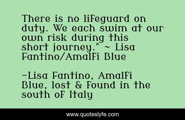 This page presents the quote "There is no lifeguard on duty. We each swim at our own risk during this short journey." ~ Lisa Fantino/Amalfi Blue". Author of this quote is Lisa Fantino, Amalfi Blue, lost & found in the south of Italy. .