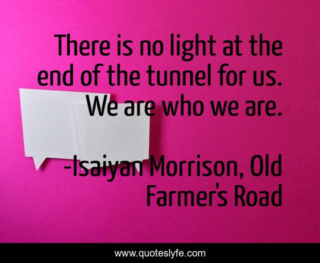 "Isaiyan Morrison, Old Farmer's Road Quotes." Quoteslyfe.com, 2025. Sat. 06 Dec. 2025. <https://www.quoteslyfe.com/quote/There-is-no-light-at-the-end-156245>.