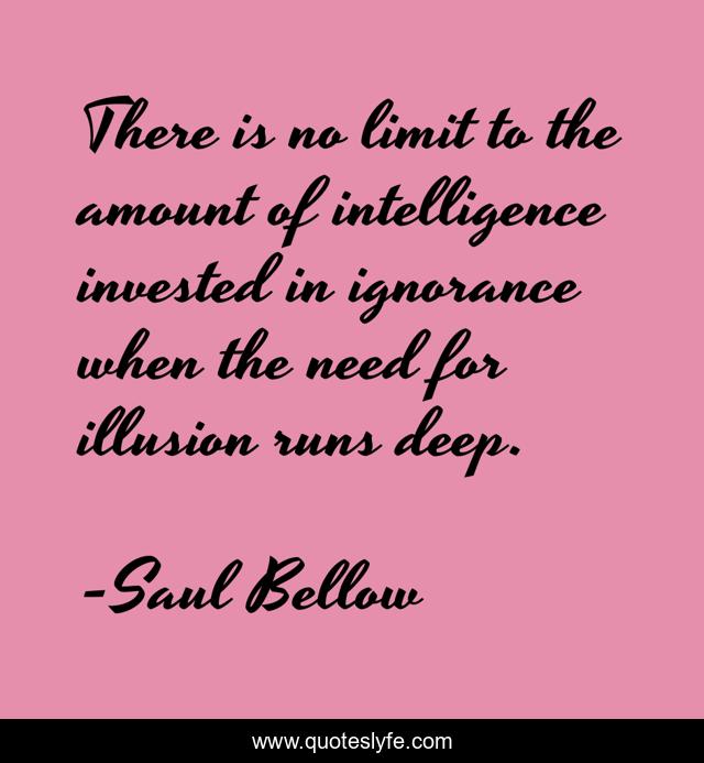 This page presents the quote "There is no limit to the amount of intelligence invested in ignorance when the need for illusion runs deep.". Author of this quote is Saul Bellow. This quote is about human-nature, religion,.