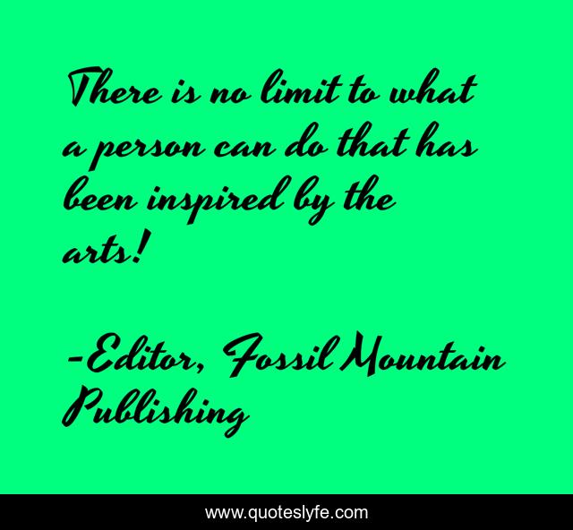 This page presents the quote "There is no limit to what a person can do that has been inspired by the arts!". Author of this quote is Editor, Fossil Mountain Publishing. This quote is about dance, arts, theater, children-s-literature, family,.