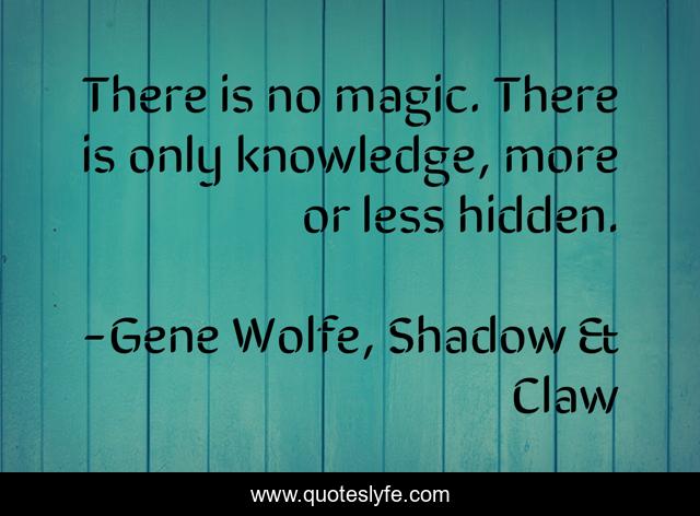 This page presents the quote "There is no magic. There is only knowledge, more or less hidden.". Author of this quote is Gene Wolfe, Shadow & Claw. This quote is about magic, knowledge,.