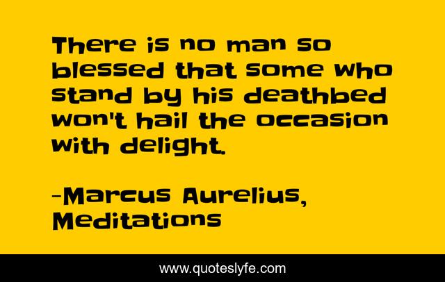 This page presents the quote "There is no man so blessed that some who stand by his deathbed won't hail the occasion with delight.". Author of this quote is Marcus Aurelius, Meditations. This quote is about life, death, tragedy, people,.