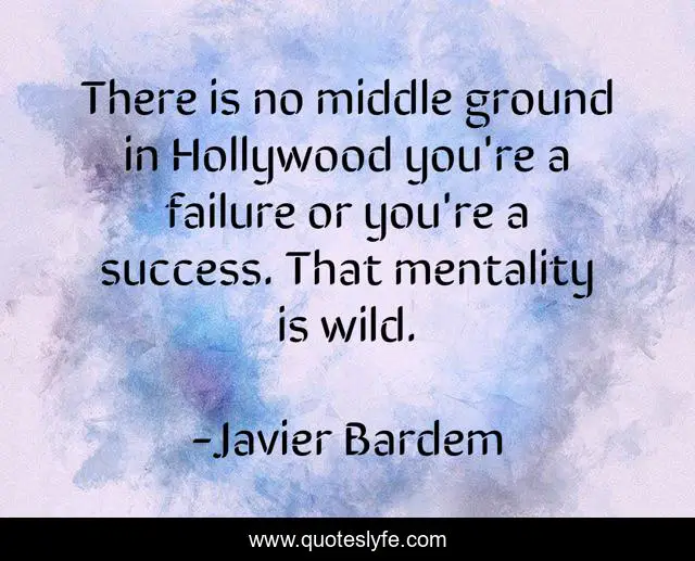 This page presents the quote "There is no middle ground in Hollywood you're a failure or you're a success. That mentality is wild.". Author of this quote is Javier Bardem. This quote is about hollywood, success,.