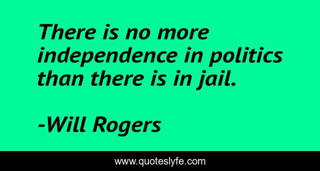 This page presents the quote "There is no more independence in politics than there is in jail.". Author of this quote is Will Rogers. This quote is about politics, jail,.