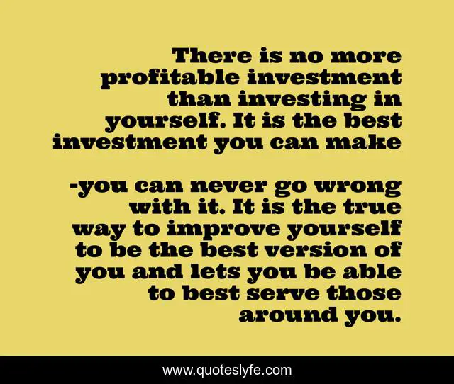 "you can never go wrong with it. It is the true way to improve yourself to be the best version of you and lets you be able to best serve those around you. Quotes." Quoteslyfe.com, 2025. Sun. 07 Dec. 2025. <https://www.quoteslyfe.com/quote/There-is-no-more-profitable-investment-than-2563>.